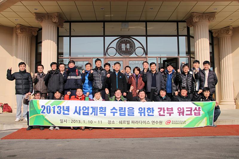 이번 워크샵은 특허정보진흥센터 부서별 사업계획 점검 및 상호 의견 교환을 통해 2013년도 사업계획의 전략적 수립과 더불어, 임원진과 기존 간부들간의 화합을 위한 친목도모를 목적으로 추진되었다.
