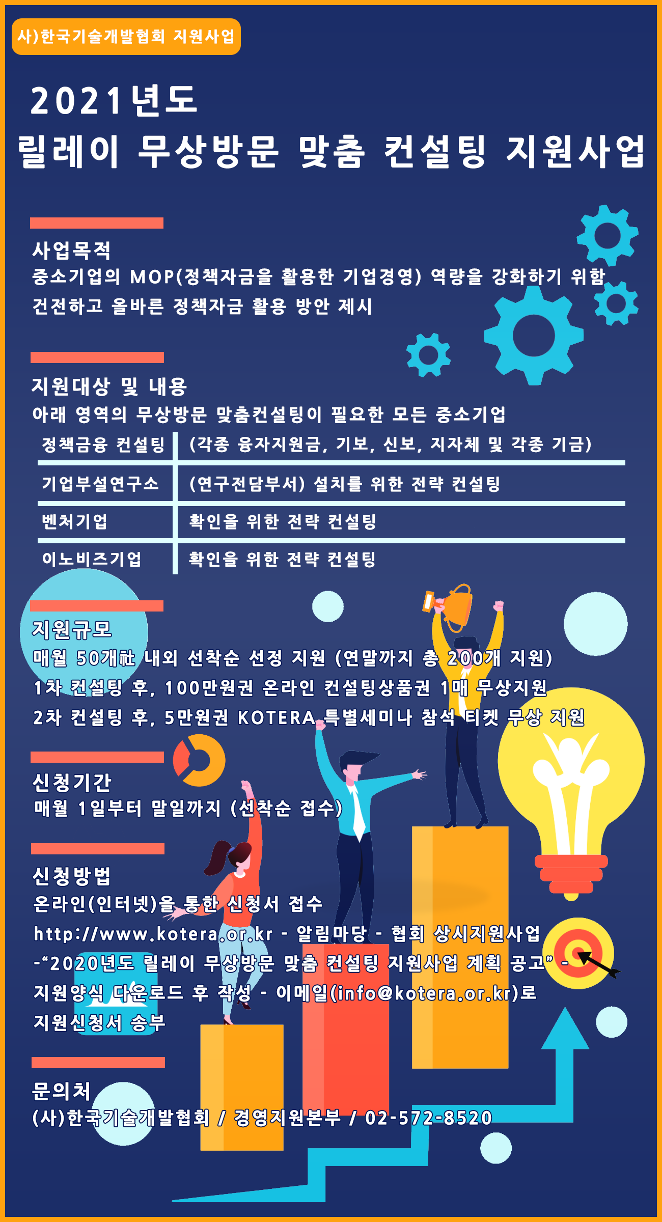 [한국기술개발협회] 2021년도 정책자금 릴레이 무상방문 맞춤 컨설팅 지원사업