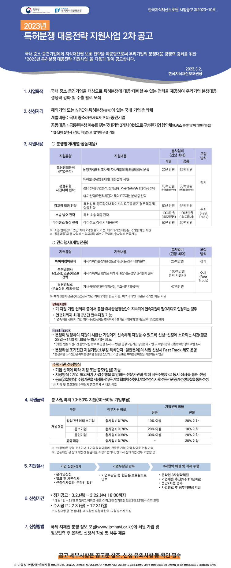 [한국지식재산보호원] 2023년 특허분쟁 대응전략 지원사업 2차 공고