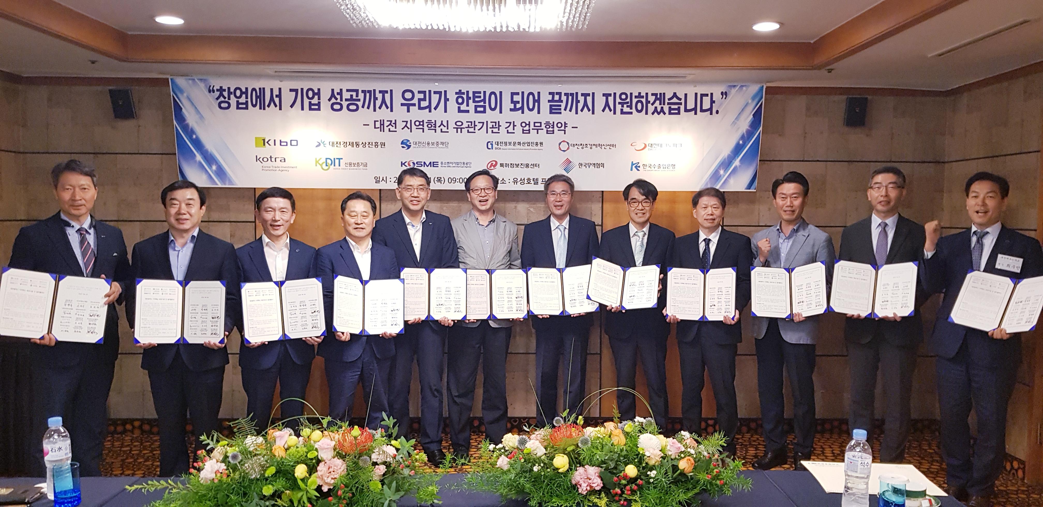 특허정보진흥센터(소장 이상철)는 지난 7.11(목) 대전 유성호텔에서 대전 지역 유관기관 12개 단체가 모여 기업의 창업 단계부터 지속적인 성장까지 원스톱으로 지원하기 위한 업무협약(MOU)을 체결했다.