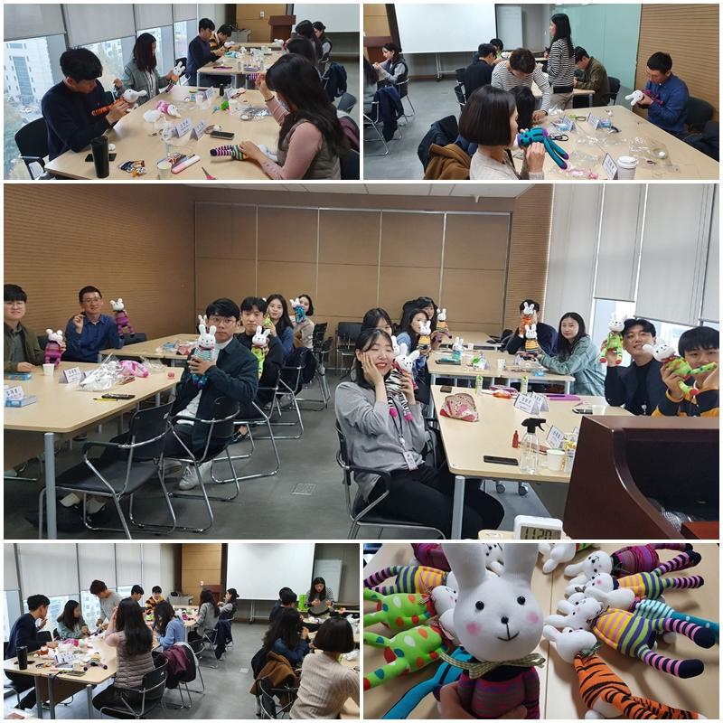 봉사활동에 참여해주신 2019년 신입 직원 여러분께 감사드리며, 직접 만드신 인형은 '지역아동센터' 아이들에게 전달하도록 하겠습니다.