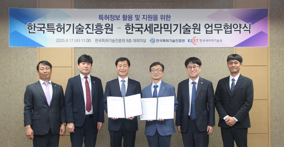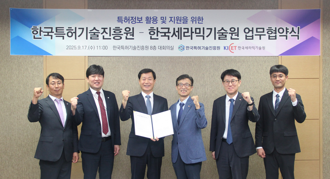 한국특허기술진흥원(원장 김명섭)과 한국세라믹기술원(원장 윤종석)은 9월 17일, 한국특허기술진흥원 본원에서 연구개발 단계에서의 특허정보 활용을 통한 기술혁신 촉진과 지식재산권 보호 강화를 위한 업무협약(MOU)을 체결했다.