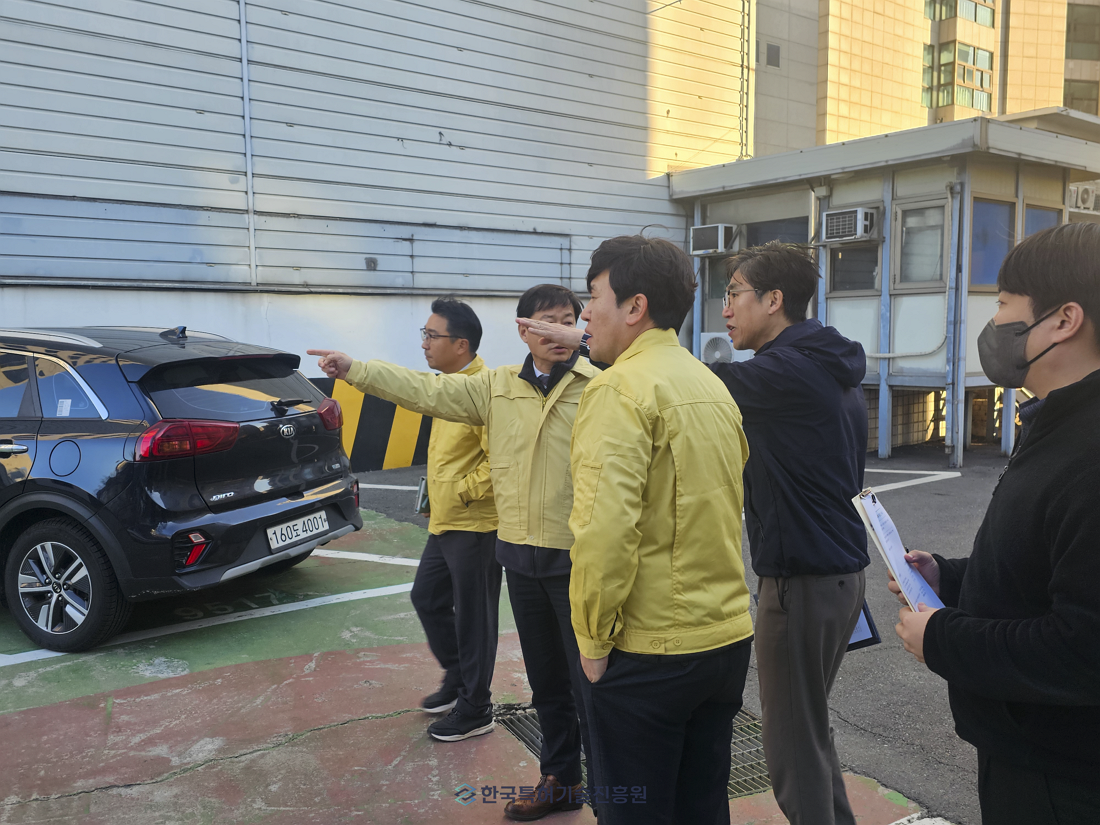 현장 점검 이후 김명섭 원장은 야외시설 화재 예방, 집수정 주변 안전 조치, 빌딩 주변 보행로 안전을 확보할 수 있는 방안을 마련할 것을 지시하였다.