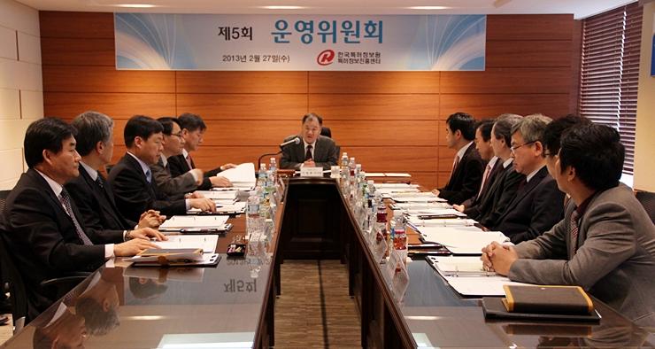 특허정보진흥센터는 2. 27(수) 오전 11시 서울 동교동 사옥 9층 대회의실에서 이범희 이사장과 운영위원들이 참석한 가운데, 제5회 운영위원회를 열고 2012년 사업실적 및 결산(안)과 2013년 사업계획 및 예산(안)을 비롯한 5개 의안을 심의했다.