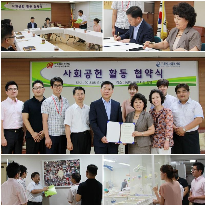 특허정보진흥센터(소장 박정렬)는 8.13(화) 오후 2시에 서울 마포구 동교동에 위치한 사회복지기관인 동방사회복지회(회장 김진숙) 4층 강당에서 사회공헌 활동에 관한 협약을 체결했다.