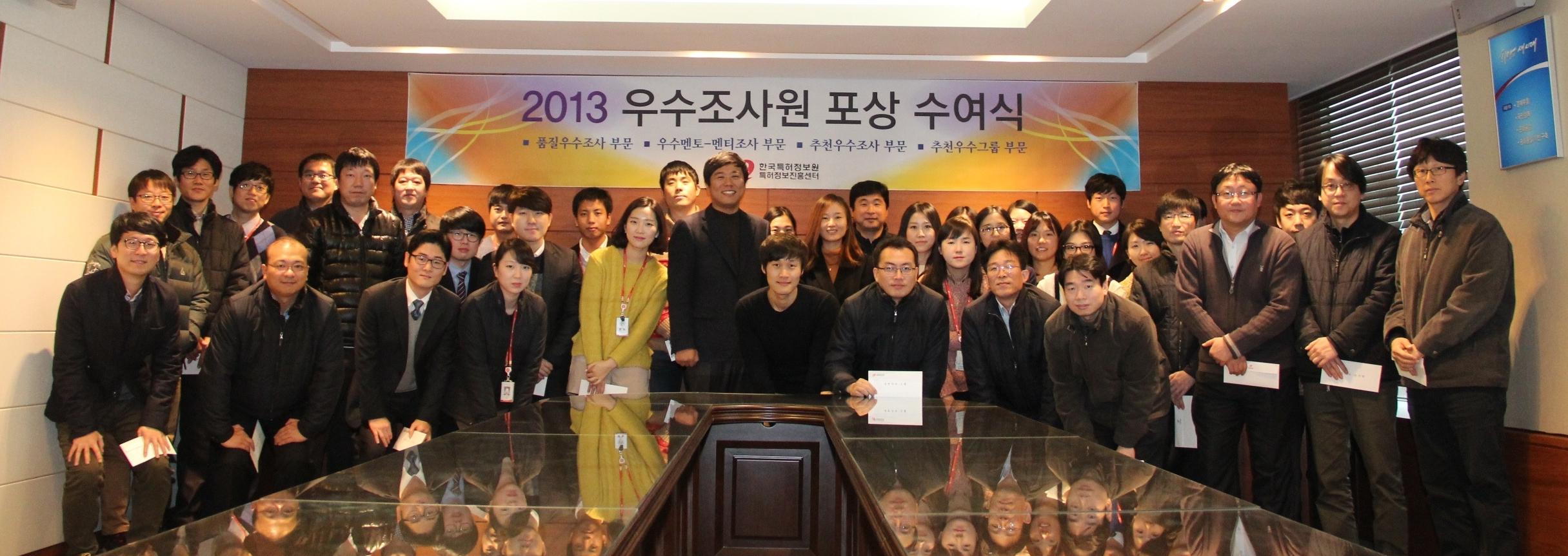 특허정보진흥센터는 오늘(11.25) 오전, 동교동 사옥 대회의실에서 2013년도 3/4분기 우수조사원 및 우수그룹 시상식을 개최했습니다.