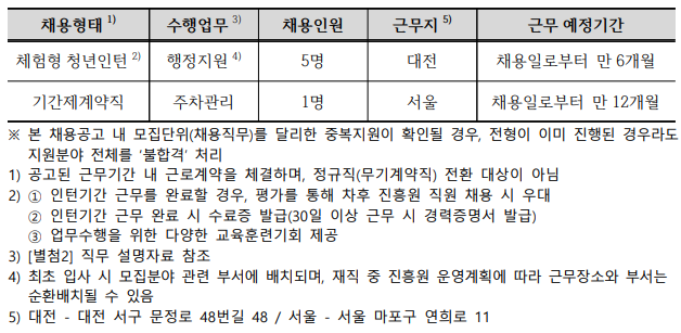 한국특허기술진흥원 체험형 청년인턴, 주차관리(고령자우선고용직종) 채용 안내