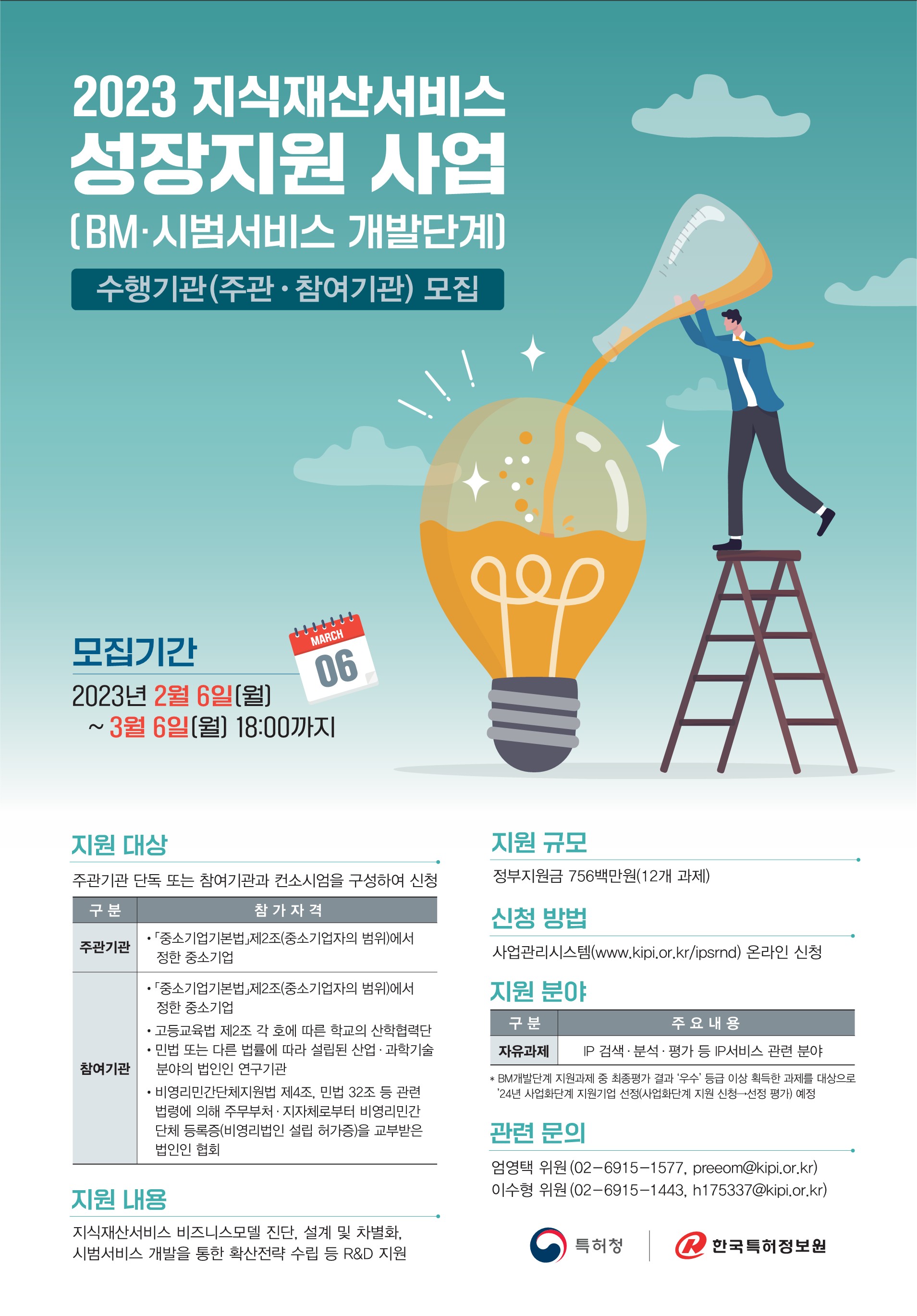 [한국특허정보원] 2023년 지식재산서비스 성장지원 사업(BM. 시범서비스 개발 단계) 수행기관 모집 공고