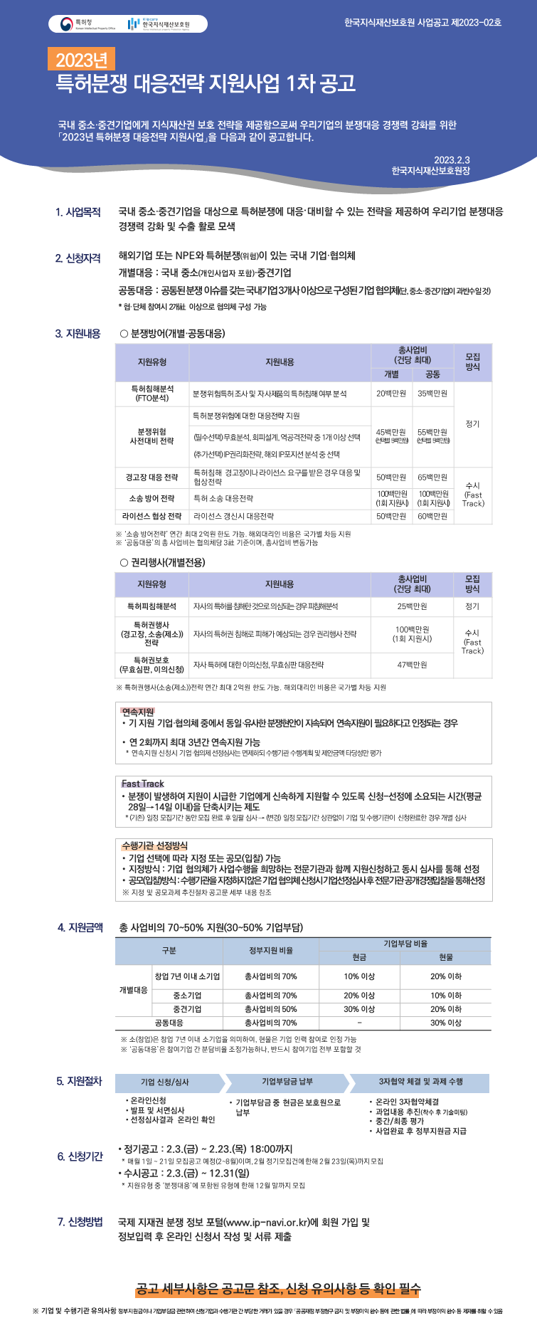 [한국지식재산보호원] 2023년 특허분쟁 대응전략 지원사업 1차 공고